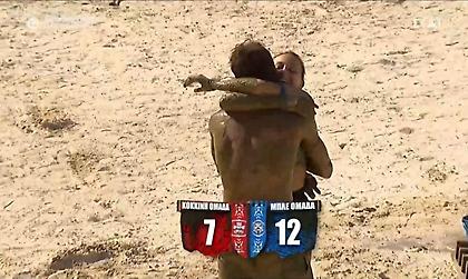 Η Ασημίνα γελά με τις αντιδράσεις της Δαλάκα κατά την διάρκεια του αγώνα.