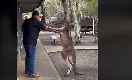 O άντρας μπήκε στη μέση όταν το καγκουρό ακολουθούσε μια γυναίκα και ένα παιδί.