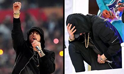 Ο Eminem έστειλε ένα βροντερό μήνυμα κατά του ρατσισμού επαναλαμβάνοντας την ιστορική κίνηση του Κέπερνικ στη διάρκεια του show του στο Super Bowl.