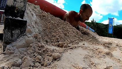 Ο Ανδρέας Ματθαιακάκης σφήνωσε στην άμμο σε αγώνισμα ασυλίας, τρομάζοντας τους συμπαίκτες του.