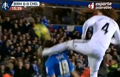 Ο Νταβίντ Λουίς δεν φοβήθηκε τον δίμετρο Νίκολα Ζίγκιτς στην επαναληπτική αναμέτρηση μεταξύ Μπέρμιγχαμ και Τσέλσι για τον πέμπτο γύρο του Κυπέλλου Αγγλίας. Ο Βραζιλιάνος αμυντικός των Λονδρέζων «ξάπλωσε» τον Σέρβο φορ στο χορτάρι με μία κλωτσιά, που λίγο έλειψε να του βγάλει το μάτι.