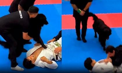 Το αξιαγάπητο τετράποδο θέλησε να διακόψει την πάλη, και χρειάστηκε να απομακρυνθεί από το ταρτάν για να συνεχιστεί ο αγώνας!