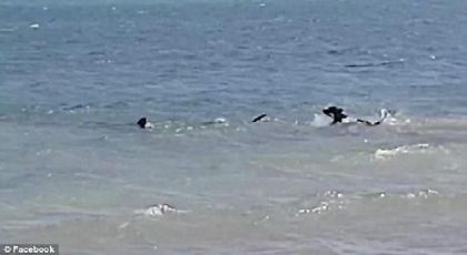 Ένας ατρόμητος σκύλος κυνήγησε ένα μεγάλο τίγρη καρχαρία στο Tόρες Στρέιτ σε μια συγκλονιστική στιγμή που αποτυπώθηκε σε βίντεο.