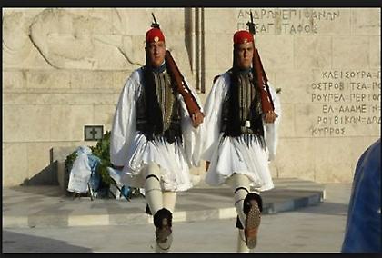 Στις φωτογραφίες βλέπουμε τους εύζωνες στο Μνημείο του Αγνώστου Στρατιώτη να φορούν την κάπα για να προστατευτούν από τη χαμηλή θερμοκρασία.
