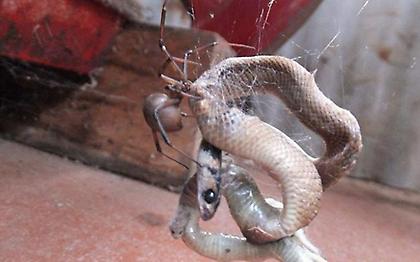 Δείτε το βίντεο με την αράχνη που έχει παγιδεύσει στον ιστό της ένα φίδι και το... απολαμβάνει αργά και βασανιστικά.