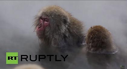Πίθηκοι στην Ιαπωνία γνωστοί και ως «μαϊμούδες του χιονιού» κάνουν spa σε γεωθερμικές πηγές και το απολαμβάνουν.