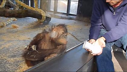 Ο χρήστης του YouTube, Dan Zaleski ανέβασε ένα βίντεο, στο οποίο ενός ουρακοτάγκος στο ζωολογικό κήπο της Βαρκελώνης απολαμβάνει ένα «μαγικό κόλπο» του.