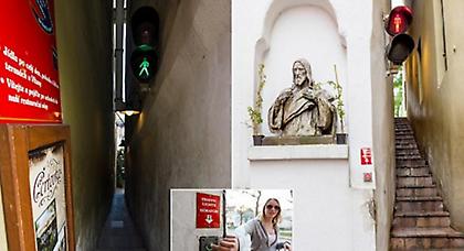 Φανάρια για τους... πεζούς τοποθετήθηκαν στους στενούς δρόμους της Vinarna Certovka που βρίσκεται στην Πράγα, προκειμένου να αποφευχθεί το... κομφούζιο.