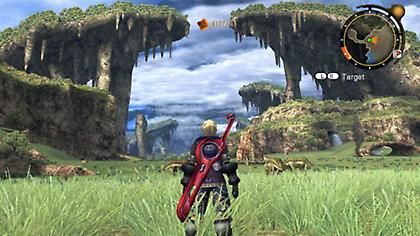 Κατά την αναρρίχηση ενός καταρράκτη, ένα από τα δείγματα platforming που μπορεί να εντοπίσει κανείς στο Xenoblade Chronicles.