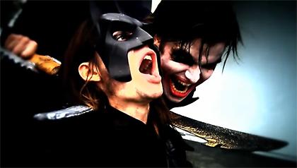Ο «Σκοτεινός Ιππότης» πέρασε στην ιστορία του κινηματογράφου για την εισπρακτική του επιτυχία, τη σκηνοθεσία του Κρίστοφερ Νόλαν, αλλά κυρίως για τις ερμηνείες του Χιθ Λέτζερ (που πήρε μετά θάνατον το όσκαρ για τον καταπληκτικό του Τζόκερ) και του Κριστιαν Μπέιλ ως Μπάτμαν. Η συνέχεια της «κόντρας» δίνεται στο internet με τον Μπάτμαν να αντιμετωπίζει τον Τζόκερ σε μάχη με …σπαθιά, ενώ συμμετέχουν ακόμα, μια τουαλέτα, μία φωτογραφική μηχανή και μία πισίνα...