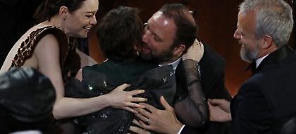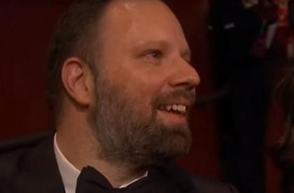 Ο Γιώργος Λάνθιμος στην πιο συγκινητική στιγμή της βραδιάς.