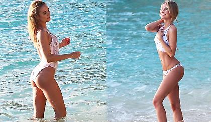Φορώντας ένα σέξι μαγιό, η Kimberley Garner φωτογραφήθηκε σε παραλία της Καραϊβικής προκαλώντας... αναστεναγμούς.