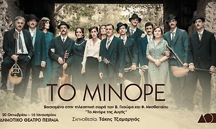 Η παράσταση «Το Μινόρε» βασίζεται στη θρυλική τηλεοπτική σειρά «Το Μινόρε της Αυγής» των Βαγγέλη Γκούφα και Φώτη Μεσθεναίου και παρουσιάζεται στην Κεντρική Σκηνή του Δημοτικού Θεάτρου Πειραιά.