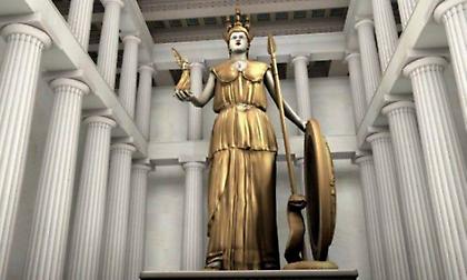 Το χρυσελεφάντινο άγαλμα της θεάς Αθηνάς, ύψους 13 μέτρων, στολισμένο με έναν τόνο χρυσού.
