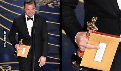 Προφανώς ήταν κάτι τυχαίο… Οι «συνομωσιολόγοι», ωστόσο, δεν ήθελαν και πολύ να παρεξηγήσουν τον τρόπο που ο Λεονάρντο Ντι Κάπριο κρατούσε έναν φάκελο, όταν παρουσιάστηκε στη σκηνή των Όσκαρ.
