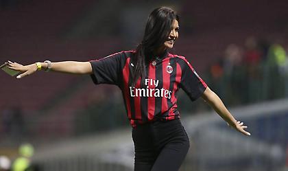 Εμφανίστηκε στον αγωνιστικό χώρο του γηπέδου μετά το τέλος του Μίλαν - Ολυμπιακός και ο κόσμος γύρισε πάλι το βλέμμα του στο γήπεδο.