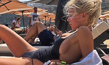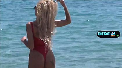 Εμφανίστηκε στον Ορνό με αποκαλυπτικό κόκκινο ολόσωμο μαγιό και έκανε τα αρσενικά της παραλίας και όχι μόνο να την χαζεύουν