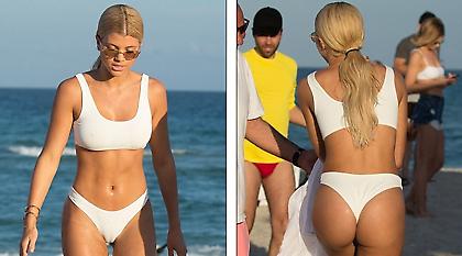 Η Σοφία Ρίτσι είναι κόρη του διάσημου τραγουδιστή Λάιονέλ, αλλά και πετυχημένο μοντέλο. Η εμφάνισή της με αποκαλυπτικό λευκό μαγιό σε παραλία του Μαϊάμι άναψε φωτιές.