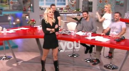 Η οικοδέσποινα του «Πρω1νού» έκανε ασκήσεις με λάστιχο και αναστάτωσε το πλατό με το καλλίγραμμο κορμί της και τα «ατελείωτα» πόδια της.