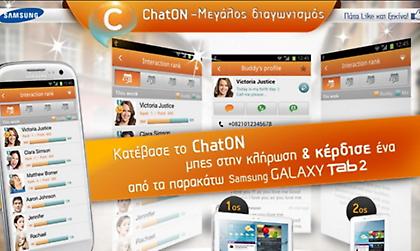 Η Samsung Electronics Hellas προσκαλεί τους χρήστες του διαδικτύου να συμμετάσχουν στο διαγωνισμό ChatON στο Facebook, να κατεβάσουν την εφαρμογή και να κερδίσουν ένα GALAXY Tab 2 (10.1) και ένα GALAXY Tab 2 (7.0).