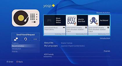 Την εμφάνισή του έκανε στο PSN προφίλ του προέδρου της Sony Computer Entertainment Worldwide Studio Shuhei Yoshida ένα Music Player app για το PlayStation 4.