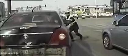 Ένας Κινέζος τροχονόμος δεν το βάζει κάτω με τίποτα. Για αυτό και διένυσε περίπου δύο χιλιόμετρα στο παρμπρίζ ενός αυτοκινήτου που προσπάθησε να ξεφύγει από το μπλόκο του.