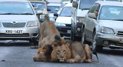 Κυκλοφοριακό χάος προκάλεσαν δύο λιοντάρια στην Κένυα, όταν αποφάσισαν να παίξουν στη μέση του δρόμου.