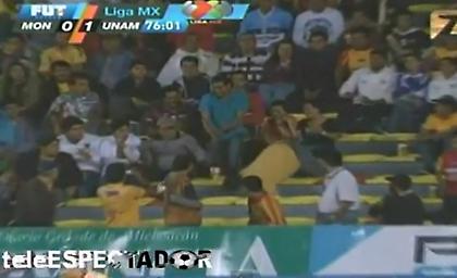 Ένας μεσόκοπος κύριος επιχείρησε να κάνει το ball-boy στις εξέδρες του αγώνα της Μορέλια με την Πούμας για το μεξικανικό πρωτάθλημα, αλλά το μόνο που κατάφερε ήταν να δει από κοντά-πάρα πολύ κοντά-το κάθισμα.