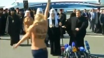 Τα είδε όλα ή -για να είμαστε πιο ακριβείς- είδε τα στήθη μιας ημίγυμνης κοπέλας, ο Πατριάρχης Μόσχας, Κύριλλος, κατά τη διάρκεια επίσκεψής του στο Κίεβο. Μέλος της γνωστής οργάνωσης για τα δικαιώματα των γυναικών, FEMEN, έτρεξε δείχνοντας τα… κάλλη της προς το μέρος, φωνάζοντας παράλληλα συνθήματα.