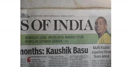 Για πολλούς το όνομα «Times» στον Τύπο είναι συνώνυμο της εγκυρότητας των ειδήσεων. Φαίνεται όμως πως αυτό δεν ισχύει για τους «Times» της Ινδίας. Η εφημερίδα της ασιατικής χώρας παρουσίασε στο φύλλο της την είδηση της νίκης της Ρεάλ Μαδρίτης επί της Μπαρτσελόνα στο «Καμπ Νου». «Το γκολ του Ρονάλντο βοήθησε τη Ρεάλ να κάνει την έκπληξη απέναντι στην Μπάρτσα», ανέφερε ο τίτλος. Μέχρι εδώ καλά. Έλα όμως που όλο αυτό συνοδευόταν από μία φωτογραφία του… λάθος Ρονάλντο.