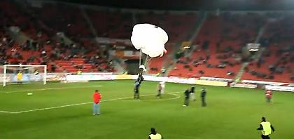 Αγανακτισμένους οπαδούς να πηδούν τα κάγκελα και να μπουκάρουν στο γήπεδο έχουμε δει πολλούς. Όμως εισβολέα από αέρος όχι... Στο ημίχρονο της αναμέτρησης της Σλάβια Πράγας με τη Βικτόρια Πλζεν για το πρωτάθλημα Τσεχίας ένας αλεξιπτωτιστής προσγειώθηκε στον αγωνιστικό χώρο.