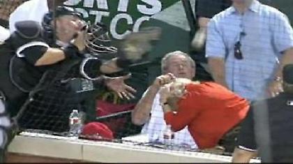 Ο Τζορτζ Μπους πήγε να δει ένα παιχνίδι μπέιζμπολ και πιο συγκεκριμένα στον αγώνα White Sox – Texas Rangers και λίγο έλειψε να φάει το μπαλάκι στο κεφάλι.