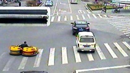 Δεν πίστευε στα μάτια του ένας αστυνομικός στην επαρχία Zhejiang της Κίνας όταν είδε στο δρόμο δύο συγκρουόμενα αυτοκίνητα, ίδια με αυτά που τα παιδιά παίζουν στο λούνα παρκ, με τον ιδιοκτήτη τους να προσπαθεί να τα οδηγήσει καθισμένος ανάμεσά τους!