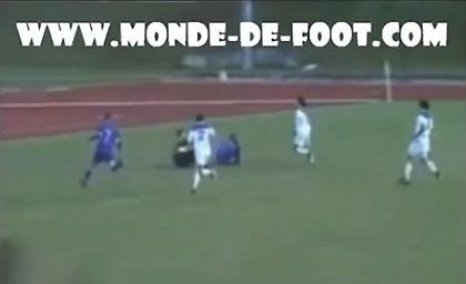 Αν έχεις τύχη διάβαινε… Σε αγώνα γαλλικού πρωταθλήματος μικρότερης κατηγορίας (αγνώστων λοιπών στοιχείων) ένας επιθετικός ξεχύθηκε στην αντεπίθεση και λίγο πριν πλασάρει δέχτηκε την κόντρα από αντίπαλο αμυντικό κι έχασε την ισορροπία του. Για καλή του τύχη, ωστόσο, πέφτοντας η μπάλα χτύπησε στο… τακούνι του και κατέληξε στα δίχτυα.
