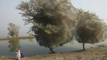 Οι παρακάτω εντυπωσιακές εικόνες είναι το αποτέλεσμα των περσινών καταστροφικών πλημμυρών στο Πακιστάν, οι οποίες «ανάγκασαν» εκατομμύρια αράχνες να καταφύγουν πάνω στα δέντρα!