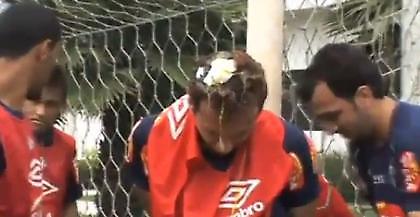 Οδυνηρή εμπειρία ήταν για τον Ζε Εντουάρντο τα γενέθλιά του. Ο επιθετικός της Σάντος θέλησε να γιορτάσει μαζί με τους συμπαίκτες του και πήγε στην προπόνηση με χαμόγελα και μία μεγάλη τούρτα. Αντί ευχών όμως, εισέπραξε τα… βασανιστήρια των συμπαικτών του. Τον έριξαν στο χορτάρι και στη συνέχεια ενώ ήταν δεμένος στο δοκάρι μίας εστίας, του πετούσαν αυγά, τον έλουσαν με νερό, κλωτσούσαν μπάλες με δύναμη πάνω του, τον πατούσαν και τον γρονθοκοπούσαν!