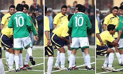 Μία κίνηση που θα ζήλευσε και ο πιο «βρώμικος» ποδοσφαιριστής του κόσμου έκανε ο πρόεδρος της Βολιβίας, Έβο Μοράλες, σε φιλικό αγώνα που έγινε για τα εγκαίνια ενός νέου γηπέδου στο Λα Παζ. Ο 50χρονος άνδρας «απάντησε» σε ένα σκληρό μαρκάρισμα που δέχτηκε από (πολιτικό) αντίπαλο με μία γονατιά σε ευαίσθητη περιοχή ξαπλώνοντάς τον στο γρασίδι.