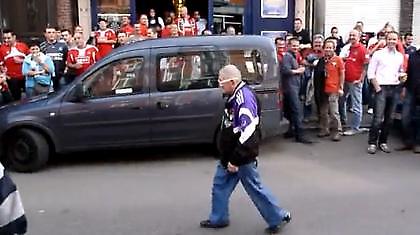 Ένα από τα μεγαλύτερα πορνό-κλισέ θέλει τον… εκπρόσωπο της τρίτης ηλικίας -μετά από διπλή προσφώνηση- να είναι εκείνος που κάνει, σε τακτά χρονικά διαστήματα, την «είσπραξη»! Στην περίπτωση, όμως, ενός Βέλγου παππού -οπαδού της Άντερλεχτ- ισχύει άλλη μεταφορά: Εκείνη που χρησιμοποίησε ο δημοσιογράφος, βλέποντάς τον «τιτάνα» να περνάει ανάμεσα από τους οπαδούς της μισητής Σταντάρ και να τους γράφει επιδεικτικά μεταξύ ομφαλού και γονάτου!