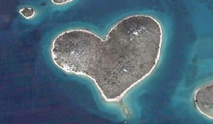 «Ας είναι καλά το Google Earth»! Αυτό θα πρέπει να αναφωνούν όλοι οι ερωτευμένοι που έχουν δει το νησί …καρδιά! Ένα μικρό κομμάτι γης στην Ανδριατική θάλασσα, του οποίου η ομοιότητα του είναι εμφανέστατη.