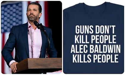 Μεγάλο φάουλ από τον Ντόναλντ Τραμπ τζούνιορ, που λανσάρει μπλουζάκια με το ειρωνικό «τα όπλα δεν σκοτώνουν, ο Άλεκ Μπάλντουιν ναι».