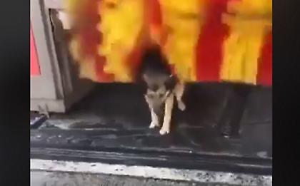 Ένα σκυλί περιμένει στη σειρά του για να πλυθεί σε πλυντήριο αυτοκινήτων και γίνεται viral.
