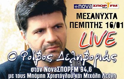 Απόψε, τα μεσάνυχτα ακριβώς, ο Φοίβος Δεληβοριάς ζωντανά στο στούντιο του NovaΣΠΟΡ FM 94,6 καλεσμένος του Μπάμπη Χριστόγλου και του Μιχάλη Λεάνη.
