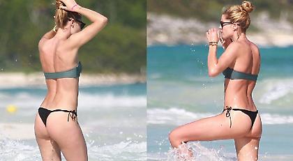 Ποιο κρύο; Η Ντάτσεν Κρόους άλλαξε το χρόνο στις παραλίες του Κανκούν και με το αποκαλυπτικό μαγιό της ανέβασε τη θερμοκρασία.