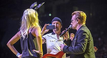 Η μεγαλύτερη γκρούπι του Μπόνο δείχνει να είναι η Πενέλοπε Κρουζ που του όρμησε και τον ξάπλωσε στη σκηνή, ενώ ο σύζυγός της Χαβιέ Μπερδέμ έτρεξε και τον πήρε αγκαλιά στη συναυλία των U2 στην Ισπανία