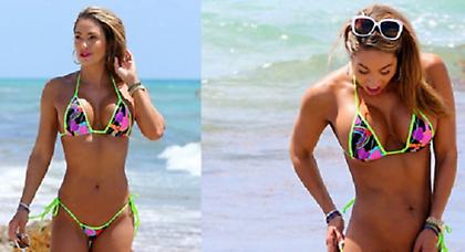 Τα κορδόνια στο φωσφοριζέ μαγιό της Τζένιφερ Νικόλ Λι δεν... άντεξαν την πίεση απ' το γραμμωμένο σώμα της, προκαλώντας ταχυπαλμίες σε όσους την συνάντησαν στην παραλία του Μαϊάμι.
