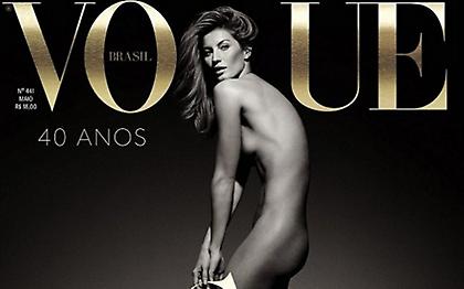 Η Ζιζέλ, θέλοντας να ευχαριστήσει τους θαυμαστές της, πόζαρε γυμνή στο εξώφυλλο της βραζιλιάνικης Vogue, πάνω σε ένα βάθρο, θυμίζοντας αρχαίο ελληνικό άγαλμα.