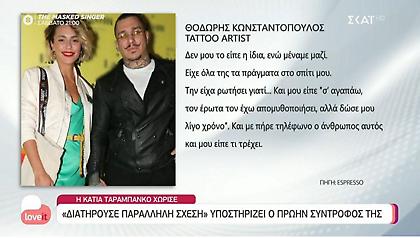 Ο Θοδωρής Κωνσταντόπουλος, tattoo artist, ανακοίνωσε τον χωρισμό του με την Κάτια Ταραμπάνκο κατηγορώντας τη για απιστία.