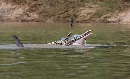 Ένα απίστευτο περιστατικό κατέγραψαν ερευνητές στη Βολιβία, με δελφίνια να φέρονται να παίζουν –ίσως ερωτικά- με ένα ανακόντα.