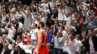 Η αποθέωση της ομάδας μπάσκετ του Ολυμπιακού στο ΣΕΦ