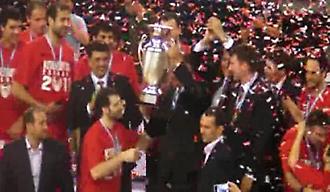 Η απονομή του Κυπέλλου στον Ολυμπιακό